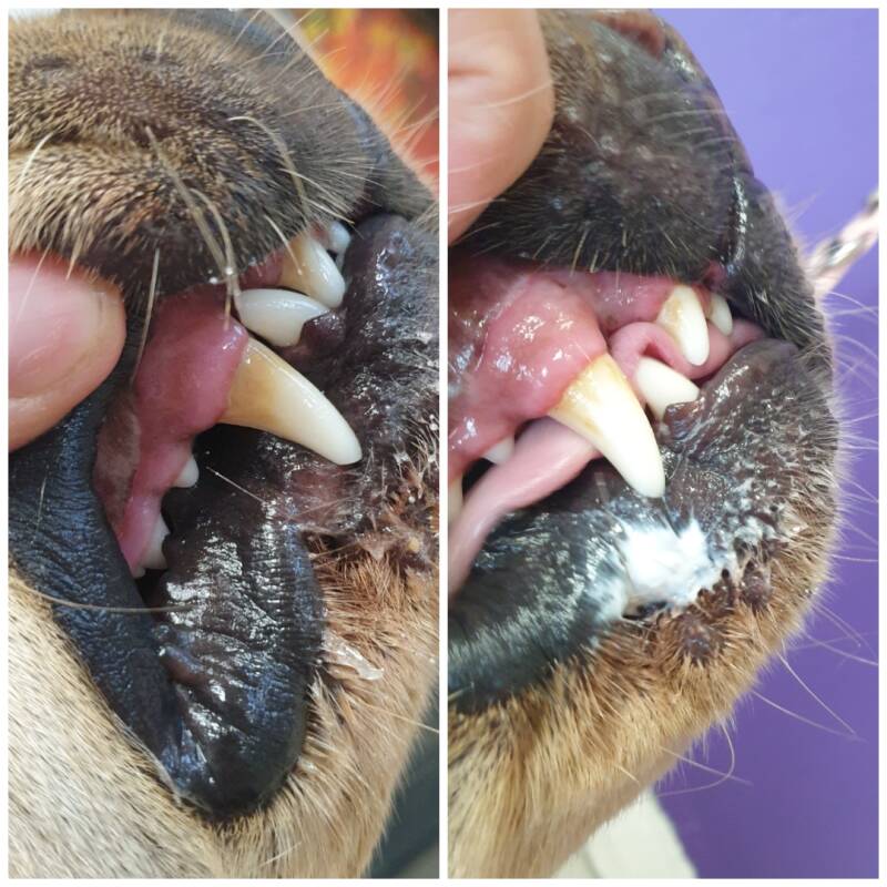 Emmi-pet is an Award winning and trusted service used by pet professionals all over the world, not only will it reduce tarter build up and staining it will penetrate under the gum line, increasing blood flow for healing and fighting of gum disease. Results can vary depending on each dog